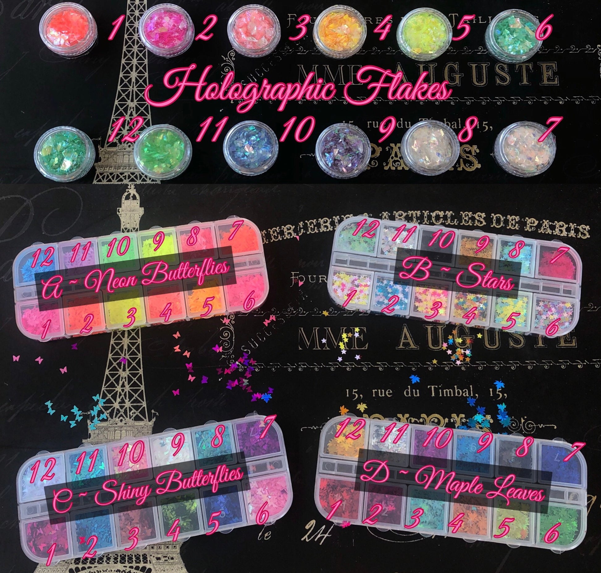 Choose between any of the shown colors, glitters and shapes. Please be sure to include what colors you want, how you want the colors to appear (translucent or opaque), what glitters you may want and whether you want them in the whole piece, only the border, or only the bottom, and if there are any photos you’d like encased within the resin.